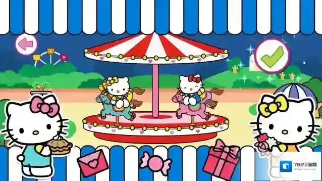 3、包含凯蒂猫家族角色(如戴眼镜的凯蒂猫、戴蝴蝶结的凯蒂猫等),属于儿童向的休闲互动,围绕凯蒂猫家庭场景展开,玩法可能涉及角色互动、场景探索等。
