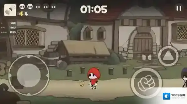3、正式开始后左边控制角色的移动,右边是跳跃,攻击和技能按键。