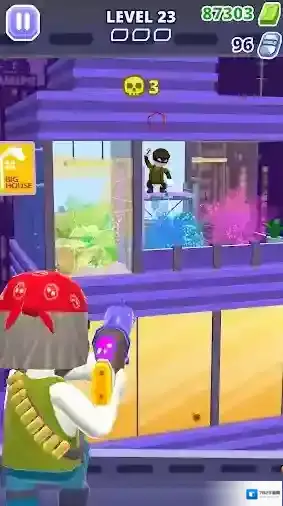1、射杀身后无尽的追捕者,帮助人质逃脱。使用炸药和其他游戏内物品消灭多个敌人,或依靠精妙的射击尽可能多地消灭坏人。向敌人发起猛烈攻击,但务必注意不要误伤人质。