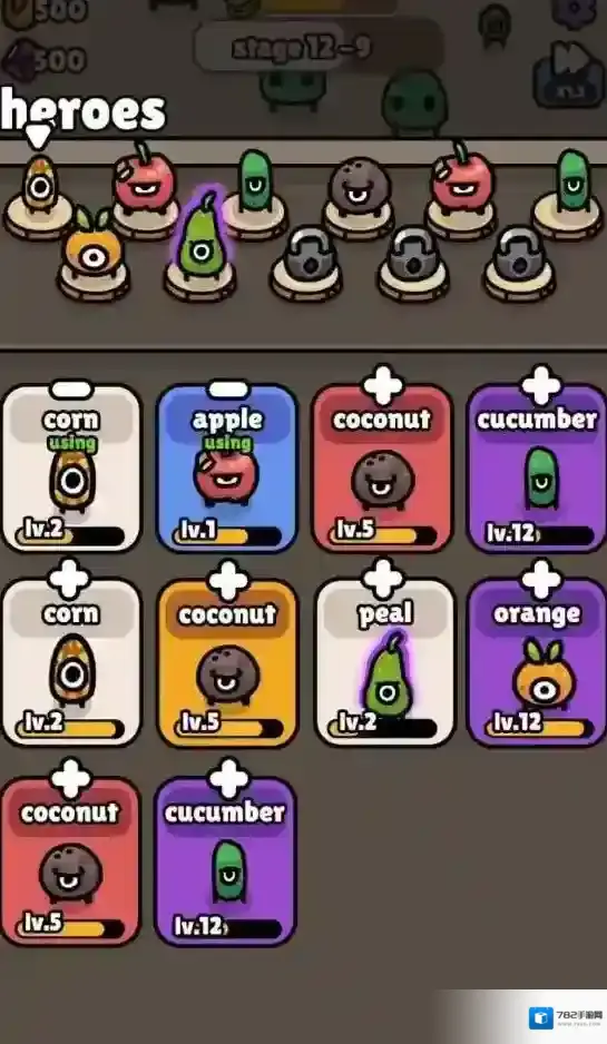 1、不同的水果蔬菜英雄等你去召唤来战斗,丰富的英雄角色可以自由选择来上阵战斗。