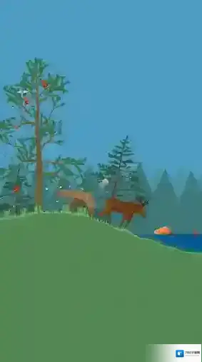 点击动物会触发不同的行为,影响森林的生态系统:驼鹿排便,为土壤施肥。田鼠啃食树根,破坏树木。狐狸会捕猎其他动物。