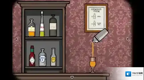 1、柜台视角:酒保乌鸦先生叫我们给坐在柜台边的鲍勃一杯酒,点击柜台上的调酒器,按照墙上的配方,分别点击伏特加和橙汁两次,点击两次调酒器后调出一杯(螺丝起子鸡尾酒),获得成就(螺丝刀),将酒交给鲍勃让他喝下后,他从嘴里吐出一把(螺丝刀);拿回鲍勃手里的(鸡尾酒杯),根据《生日》里从祖父上衣口袋里得到的配方,分别点击杜松子酒和汤尼水两次,点击两次调酒器后调出一杯(琴汤尼),获得成就(锈湖琴汤尼),将酒交给鲍勃让他喝下。