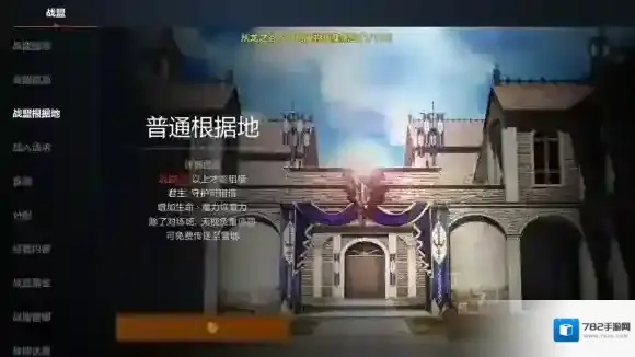战盟等级达到3级后,战盟的君主以及守护者有资格购买战盟根据地!在战盟根据地中,成员回复生命以及魔力的速度更快。