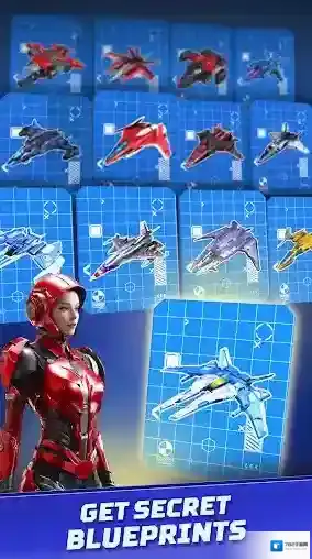 1、有不同类型的战机可以让玩家解锁去使用,各种战机配件可以自由搭配来增强你的火力。
