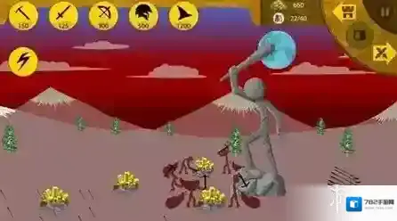 游戏初期,玩家仅拥有矿工和棍棒手两种兵种,矿工负责开采矿石以获取经济资源,但需注意,矿工脆弱且易受敌方攻击,因此需建造士兵保护他们。