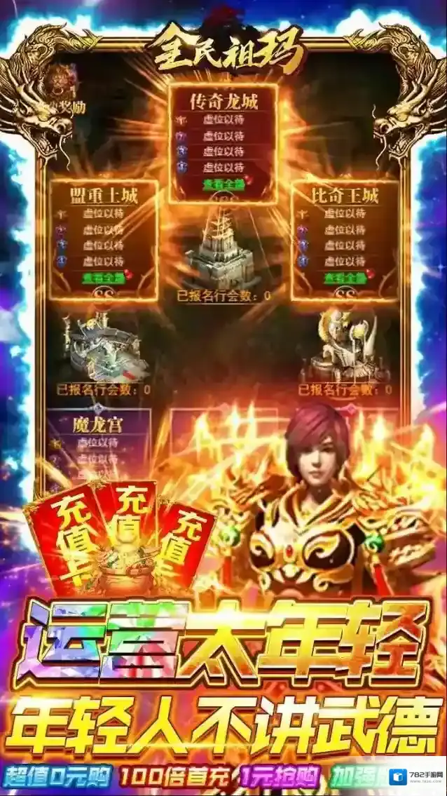 游戏上线就送满级VIP,回收装备得元宝,十万充值卡拿到手软!