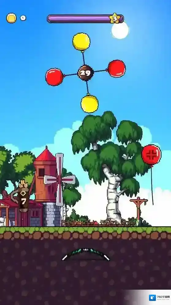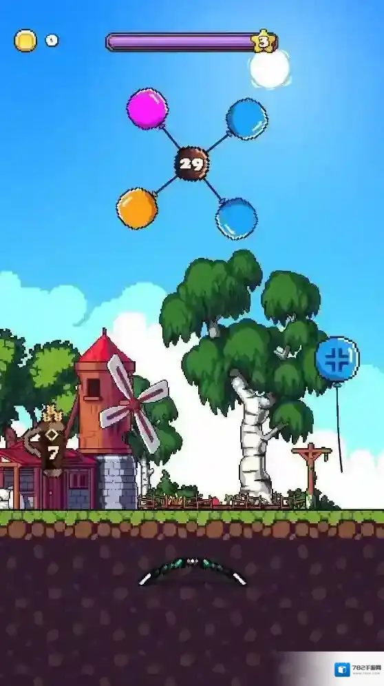 3、关卡里的气球会按照不同的方式进行转动,把握好时机发射弓箭来击破气球,击破气球可以增加闯关时间。