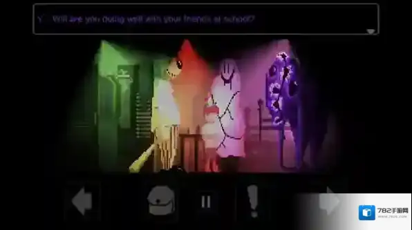 2、正式开始后屏幕下方的左右箭头可以控制角色移动,感叹号是进行互动和推进剧情。