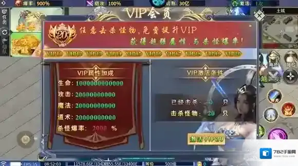 4、另外,游戏内的20级VIP会员只需击杀20只怪物就可以领取。