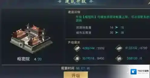 2、第二则是升级主城府,主城府的升级可以开放更多城市建筑,增加资源地数目上限,这可以保证玩家攻占资源地时不会受限。