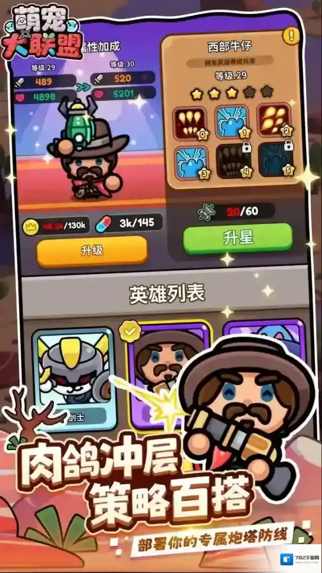 2、英雄升星,升星可以提高英雄的等级上限,同时增加基础属性。