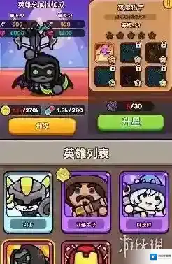 1、英雄等级,提升英雄等级,能够增加各项属性,提升战斗力。