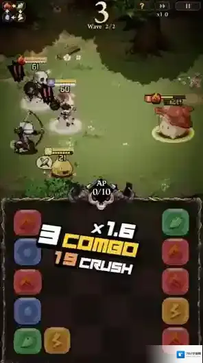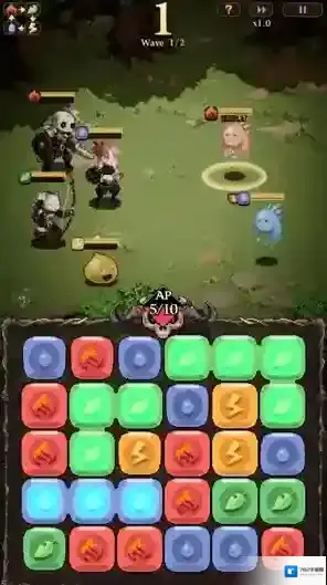 游戏中的战斗玩法以消除为主,玩家需要消除各种颜色的方块让角色释放不同的攻击,每一个方块对应一种元素属性。游戏中的伙伴都有不同的属性,消除这些方块就可以让他们进行战斗,消除的数量越多攻击的威力越高,不断消除各种方块来击败出现的魔物吧。