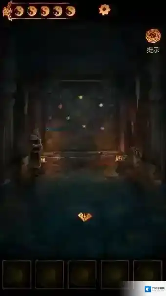 1、进入右边的墓室,书柜上获得一只石狮子,把石狮子放在主通道的空缺处,根据墙上的石狮子改变四个狮子朝向,一个密码箱降下来。