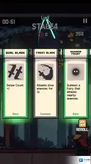 3、当切开水果后玩家会获得经验,经验满后可以升级获得技能,玩家可以选择一个来强化自己。