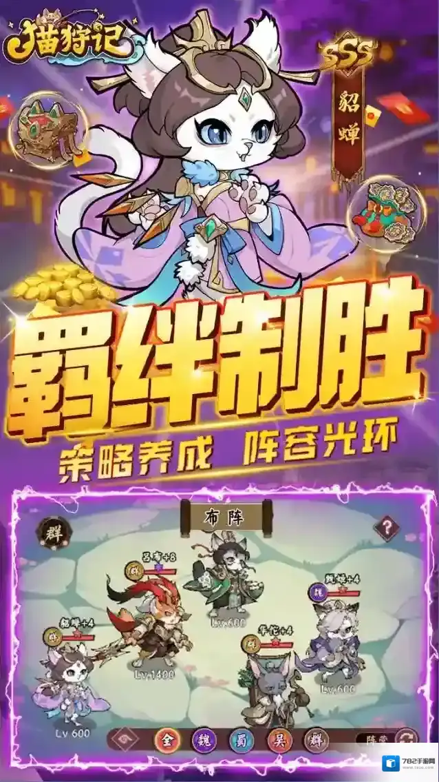 1、这是一个充满乐趣和挑战的猫咪三国世界,玩家可以在这里书写猫狩传说。