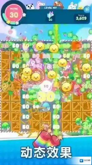 3、连击奖励系统设计巧妙,连续消除会触发可爱的动物角色祝贺动画,为玩家提供正向激励,增强游戏体验。