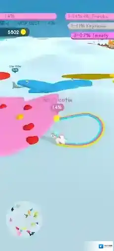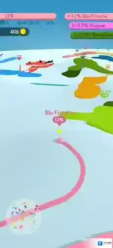 2、通过灵活的走位和策略的操作来圈出更大的领地,不断扩展你的颜色,赢下比赛获得丰富奖励。