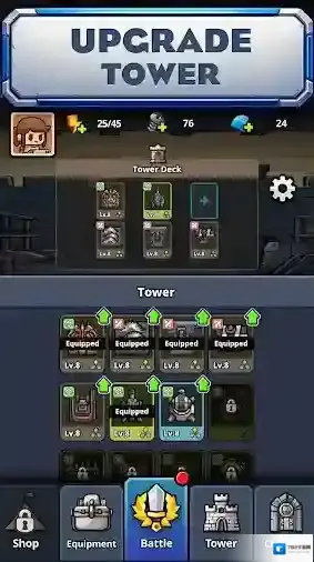1、武器、衣服、装备、塔楼,应有尽有!你可以收集并升级它们,提升自己的战斗力,迎接更多挑战。