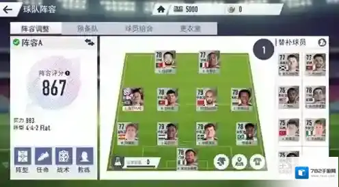 5、所以我这边给各位朋友一个前期百搭阵容,以8名90以下的球员卡+替补席凑出一个100化学的阵容,剩下三个主力位置可以上任意卡,来实现前期的战力最大化。