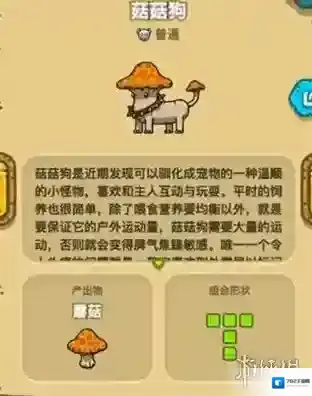 菇菇狗:温顺的小怪物,可驯化为宠物,喜欢与主人互动玩耍。