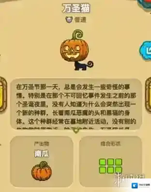万圣猫:长着南瓜恶魔的头和黑猫的身体,经常在墓地附近出没。