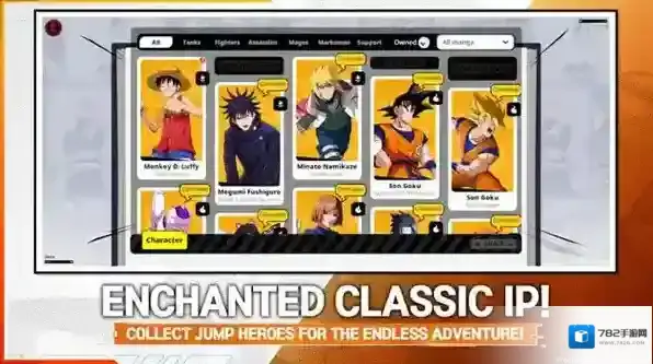 3、漫画群星大集结包含《周刊少年Jump》旗下众多经典漫画角色,包括《七龙珠》《航海王》《火影忍者》《BLEACH》《鬼灭之刃》《咒术回战》等。