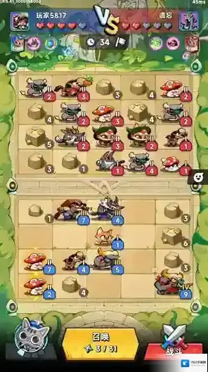 2、进入战斗后点击召唤按钮可以召唤英雄,相同等级的可以合并来提升等级。