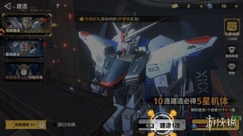 4、点击建造,收集更多高能的高达机体,第一次免费抽取。