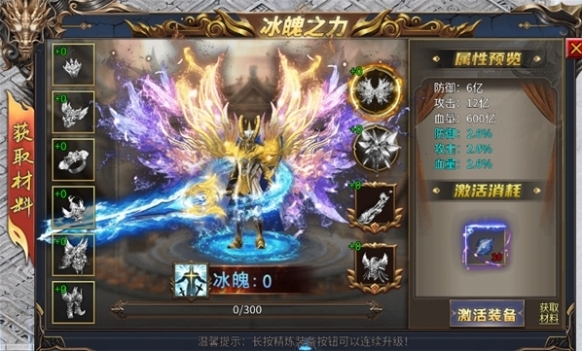 玩家穿戴各种冰魄装备可积攒冰魄之力,提升防御、攻击力。