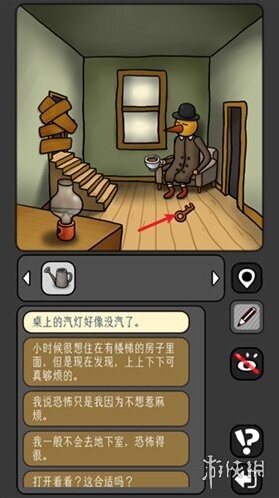 5、回到拿水壶的房间,把糖块放进咖啡,拾取地上的钥匙。