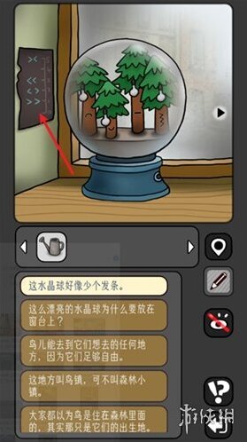 12、拾取地上的钳子,点击窗台上的水晶球,装上发条,获得线索。