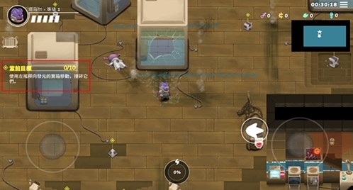 5、如图所示,玩家需要将发光的宝箱撞碎;