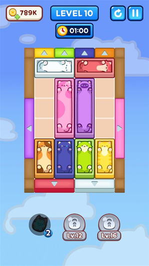 游戏中你可以通过移动方块来帮助猫咪逃脱,通过移动方块到指定的位置来完成挑战,解决不同的问题来体验不一样的乐趣,完成各种各样的任务体验新的乐趣,解决不同的谜题来体验全新的乐趣,不断移动更多的方块来获得金币,帮助更多的猫猫逃脱来体验最有趣的闯关。