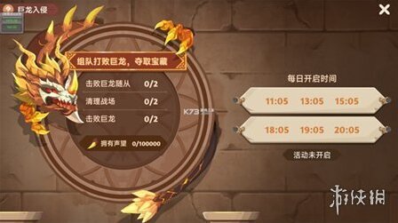 9、巨龙入侵:组队PVE玩法,玩家需组队击杀巨龙以获取猎龙声望,全服提交猎龙声望达到一定量后,可获取全服奖励,提交声望越多,奖励越丰厚。
