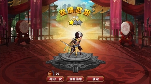 2、接着过完游戏剧情,先免费招募一位武将,并对其进行升级培养吧
