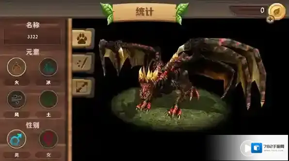2、在初始界面选择火龙冰龙等元素属性,自定义鳞片颜色翼展比例角冠造型,滑动屏幕切换视角,用重力感应或虚拟摇杆操控飞行。