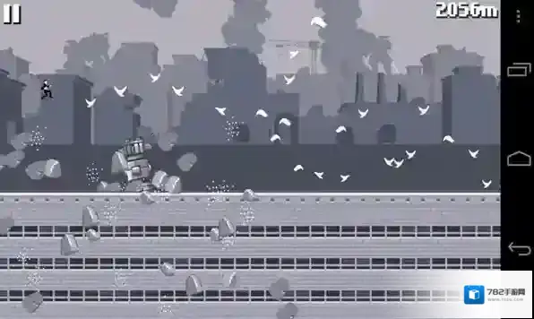 屋顶狂奔是一款横版像素奔跑类作品,玩家需操控主角在危险大楼间持续奔跑跳跃,随进度推进地图愈发惊险,灰黑配色与黑色幽默风格暗含人类文明终结的隐喻,以简单玩法考验反应,跑距越远分数越高,瞬间犹豫便可能丧命。