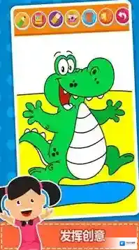 2、在卡通填色模式中(如小猫、鳄鱼图案),玩家面对已勾勒好轮廓的卡通形象,通过点击下方色彩工具。