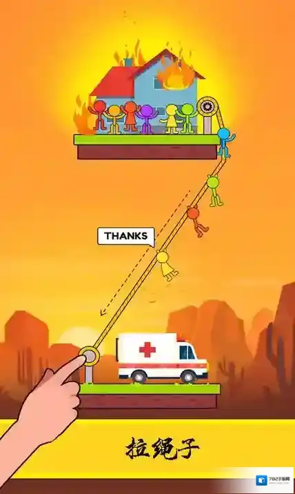 1、玩家通过拉动场景中的绳子,改变物体的位置和状态,完成救援或通关目标。
