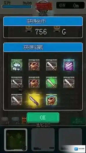 3、游戏结算时,在获得金币和宝藏界面,点击【OK】确认奖励,以便继续游戏或进行装备升级等操作,确保奖励生效。