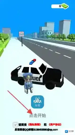 1、在游戏初始界面,勾选同意协议后,点击点击开始,进入警察模拟游戏,开启驾驶警车执行任务的流程。