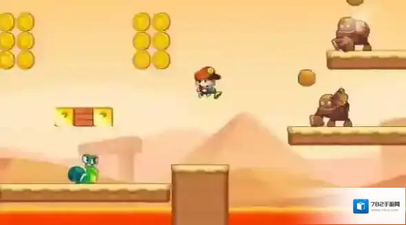 2、奔跑时踩踏蘑菇怪顶部将其击败,躲避板栗壳滚动与火焰陷阱,收集沿途金币与隐藏砖块中的道具蘑菇,获得二次跳跃能力。
