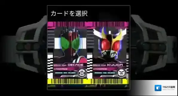 1、进入游戏后可手动操作DecaDriver腰带,两侧点击打开卡槽界面,浏览并挑选自己想要变身的假面骑士卡片。