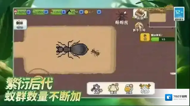 2、领地攻防战略与其他昆虫族群争夺资源点,运用阵型搭配和地形优势,采取闪电战、消耗战等不同战术建立蚂蚁王国。