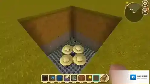 4、在陷阱的中心区域挖出一块范围,放上一些稻草人;