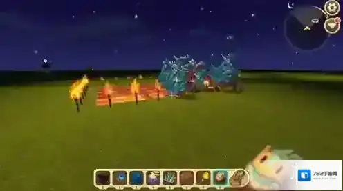 6、最后我们在陷阱四周插上火把吸引野人的前来就可以啦!陷阱其实不用掩饰,野人没啥脑子;