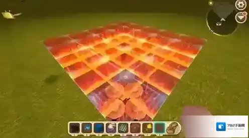 2、用方块复制器迅速的把陷阱底层覆盖满一层电石块;