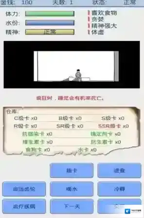 3、疾病系统随机触发,需要储备医疗卡牌应对突发健康状况。