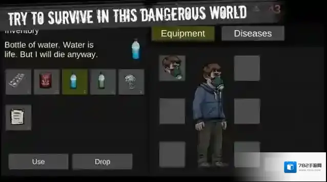 1、玩家进入游戏后首先会出现在随机生成的末日场景中,需先观察周围环境,快速搜寻附近可见的基础物资如食物、水和简易工具,为初期生存奠定基础。